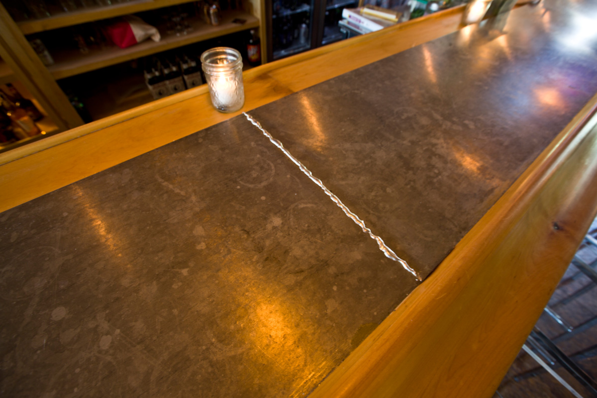 METAL worked with a local builder to design and craft the metal work for this custom bar including a distressed zinc top with vintage cold-rolled sheet. The bar resides at The Wood Shop in Clarkston, Michigan.