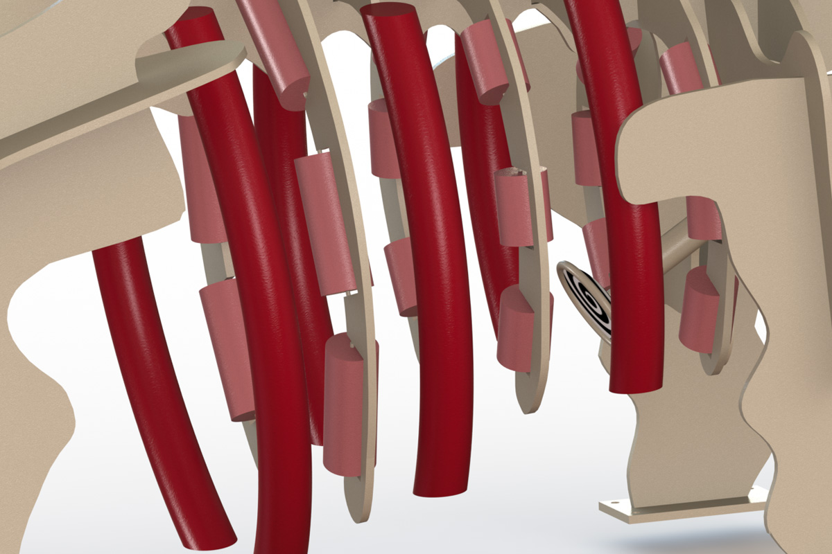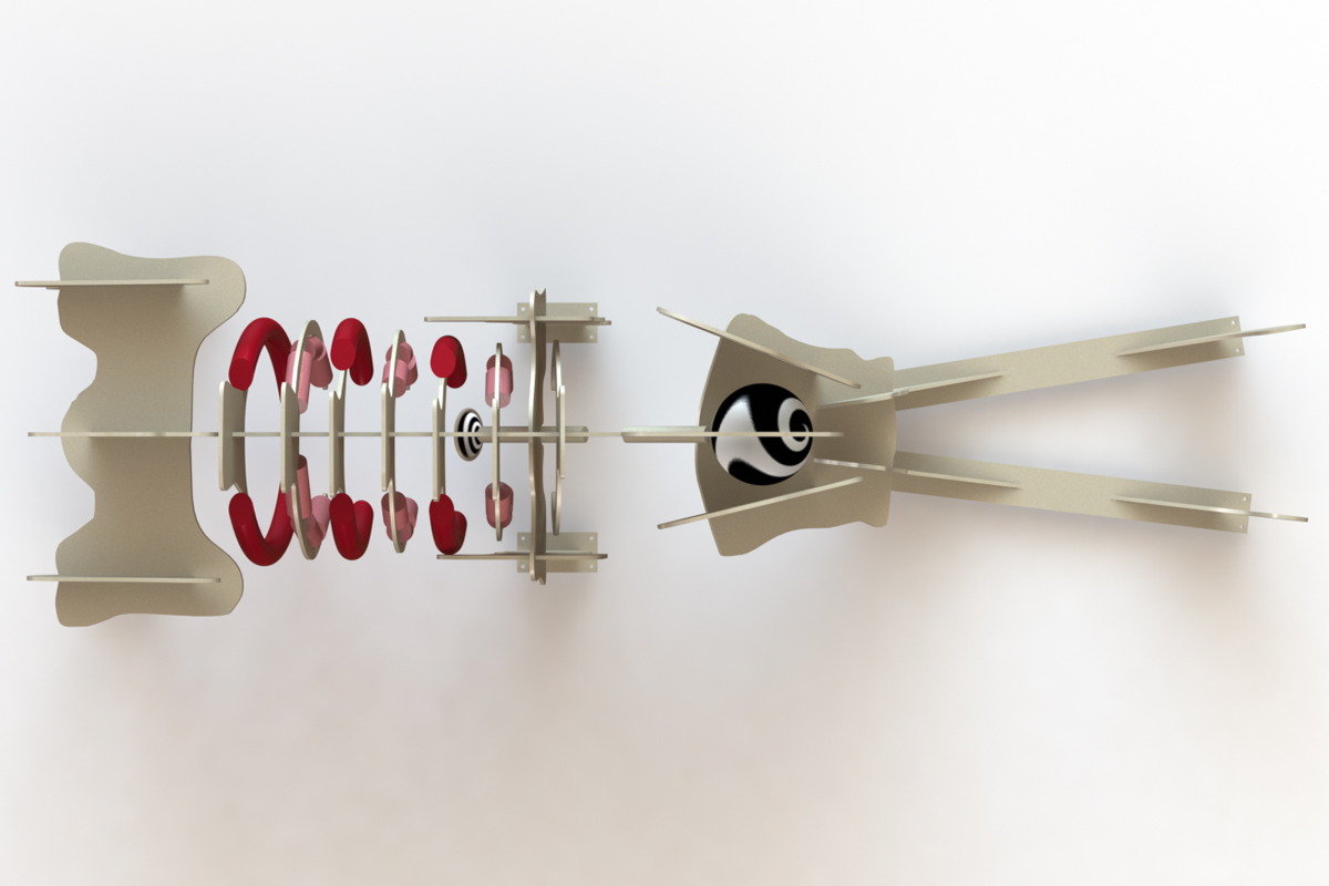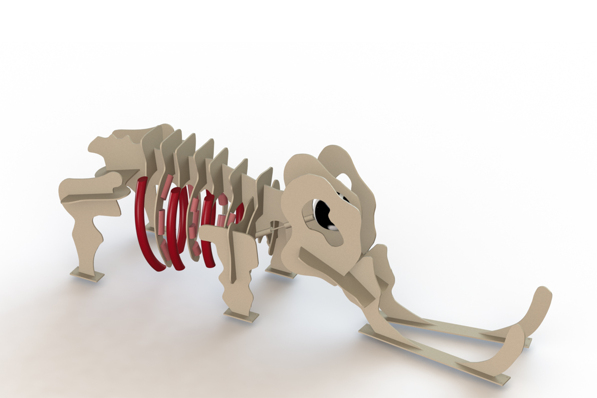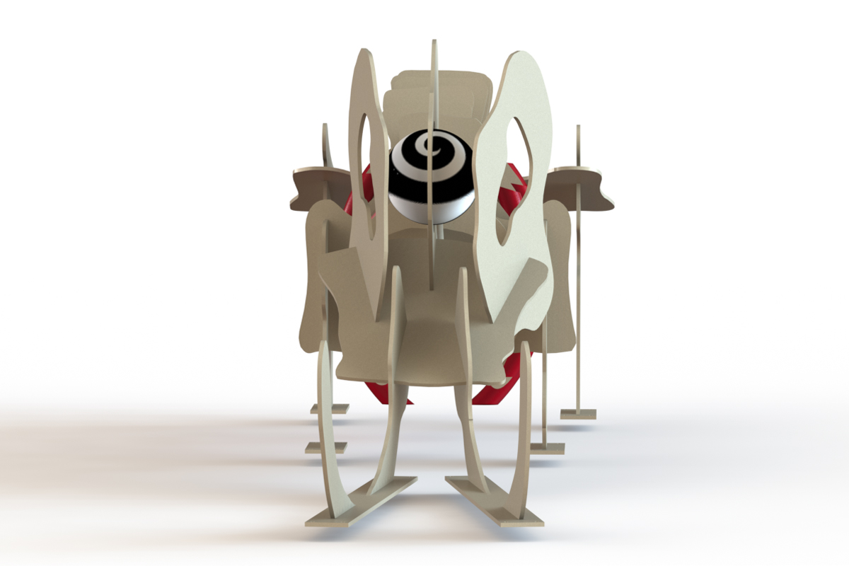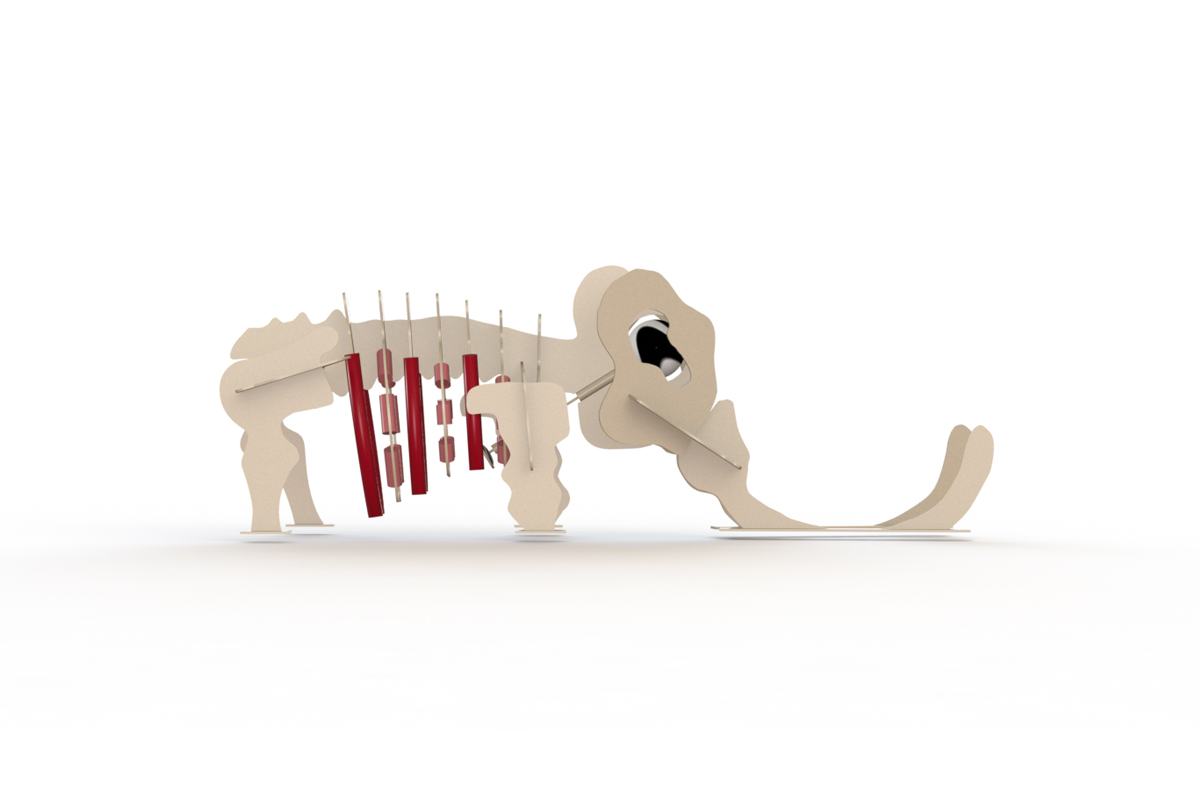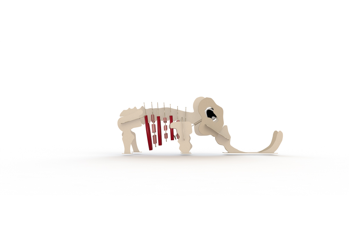 This half-scale mastodon is constructed of fabricated steel contains hollow rib sections filled with loose media of different mesh size. Rotational in movement, users can “rattle” their way into history, all the while steering the large mammal’s vision via the kaleidoscope wheel. Designed for the Matthaei Botanical Gardens & Nichols Arboretum at the University of Michigan, these musical flowers are one of five interactive components proposed to increase children’s exposure to the idea of playing with sound early on in their development.