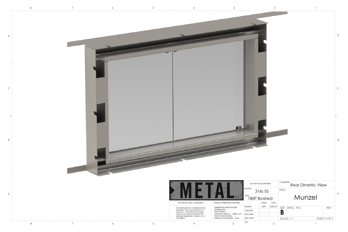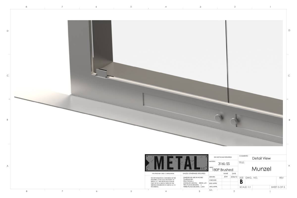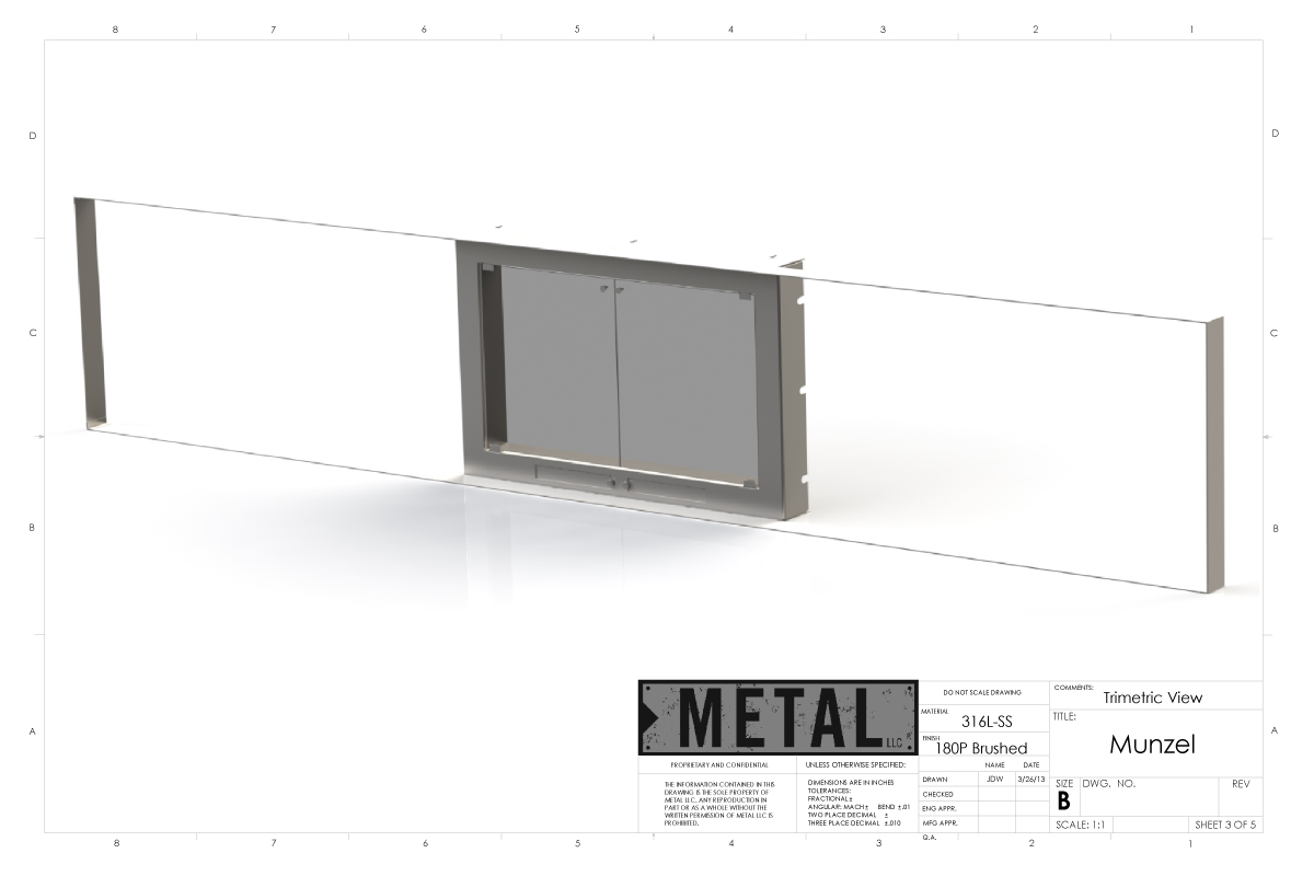 Ann Arbor, MIStainless fireplace insert with tempered glass doors and integrated fire screen and draft doors. Vertical brick surround accent integrate this brushed steel insert into existing masonry. Tags: Research & DesignSteelFireplaceAnn ArborMichigan