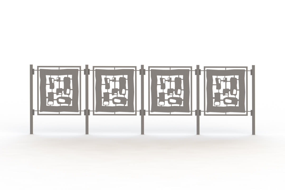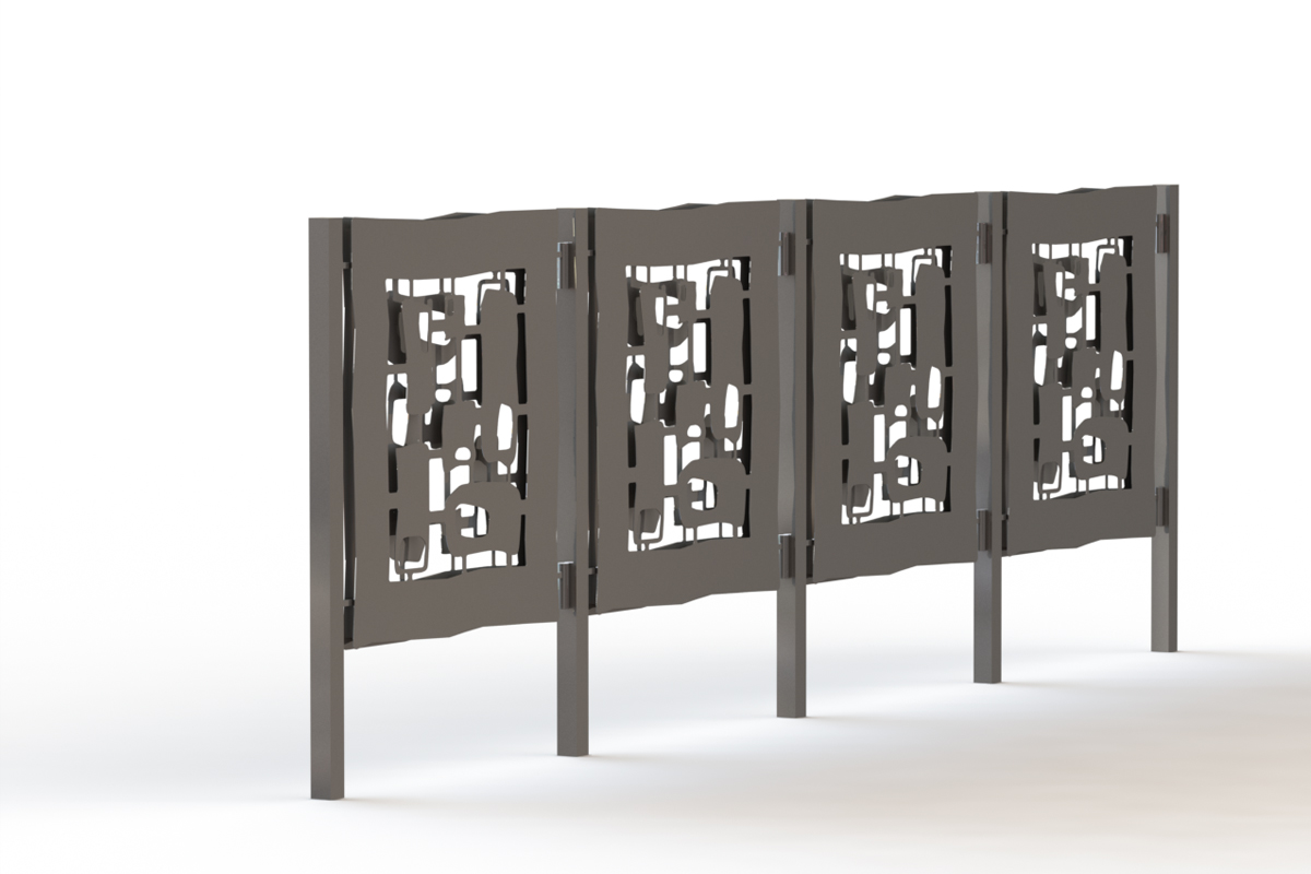 Ann Arbor, MIOutdoor stainless safety partitions with insert design developed from a customer owned artistic piece. Tags: Research & DesignSteelPartitionExteriorAnn ArborMichigan