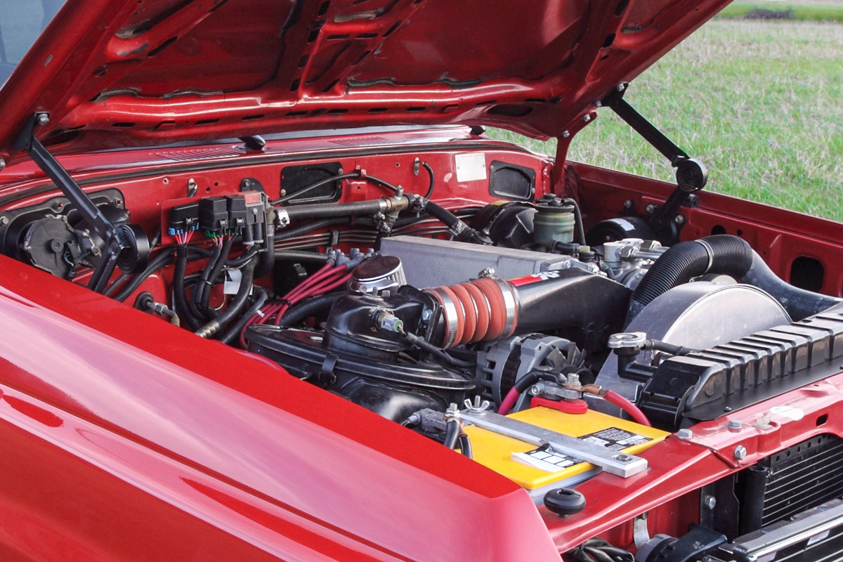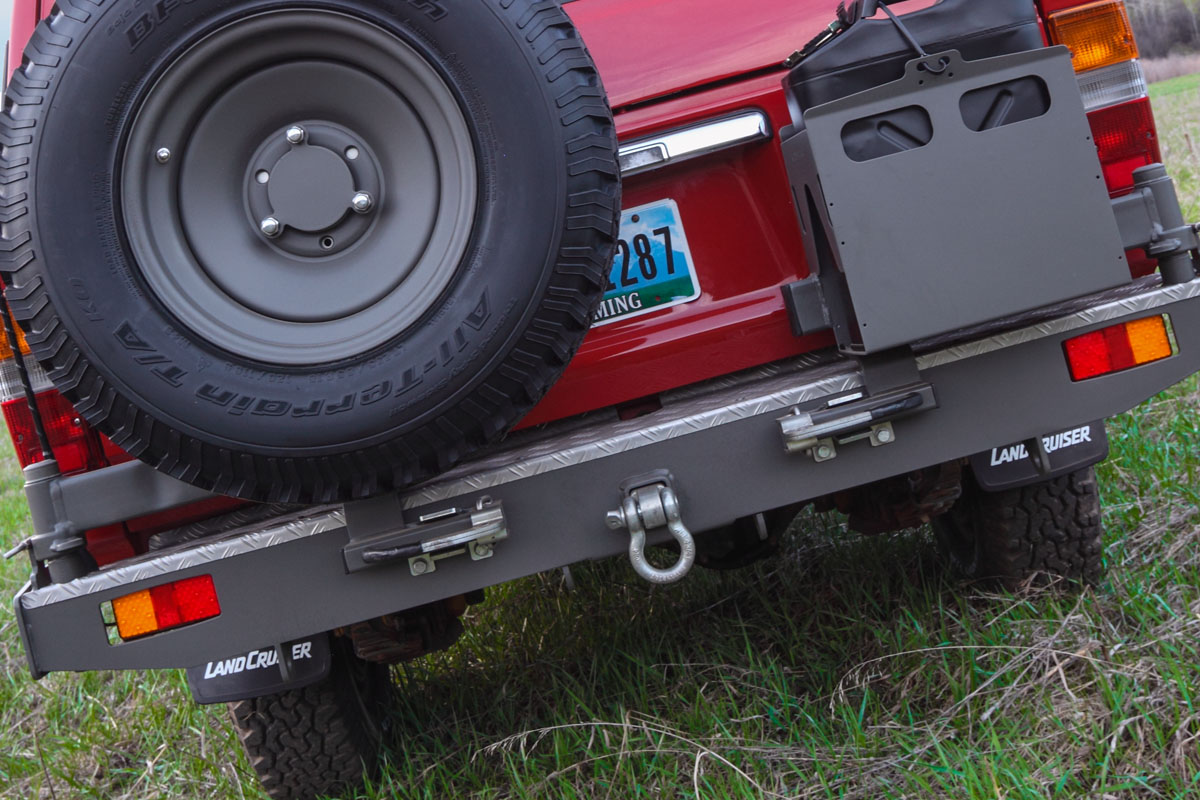 Chevrolet Ramjet 350 with Aussie 5spd. Detroit rear locker, ARB front bumper, Yanmar rear swing-a-ways with color matched sliders and custom 16” steel wheels. PPG two stage paint exterior. Includes on-board air compressor and CB radio.