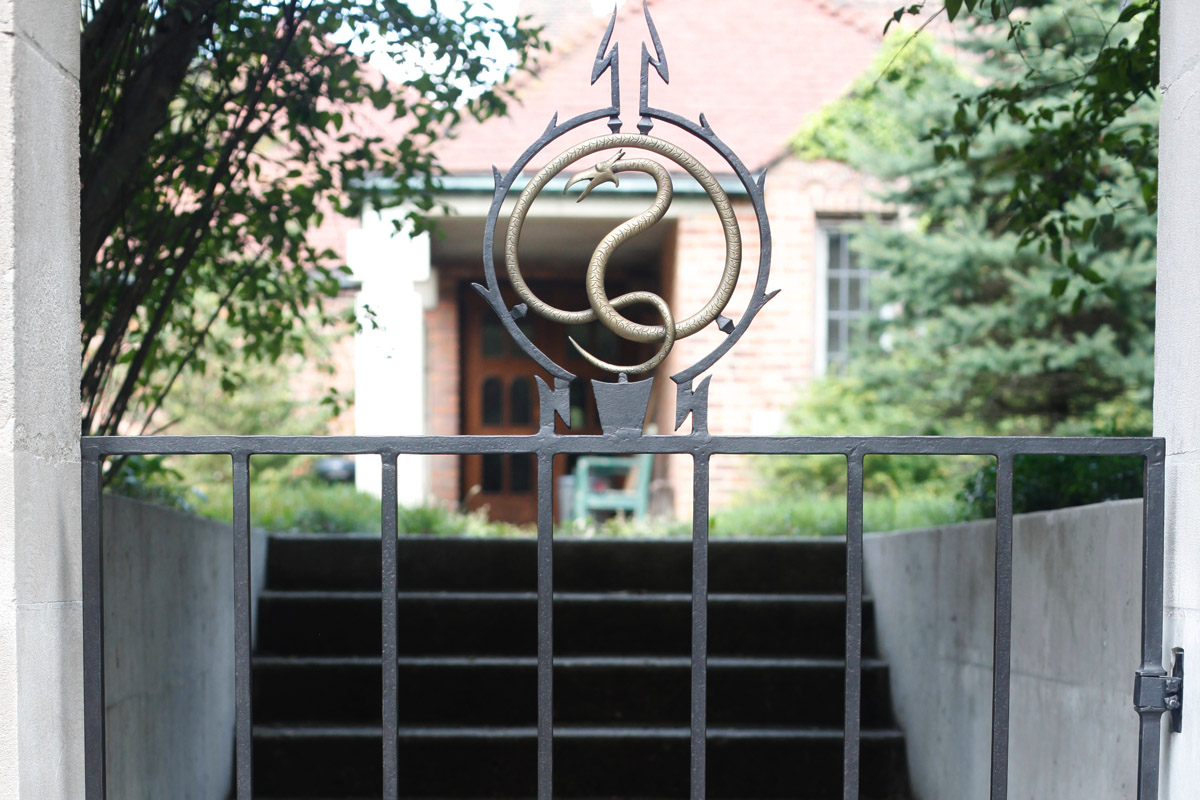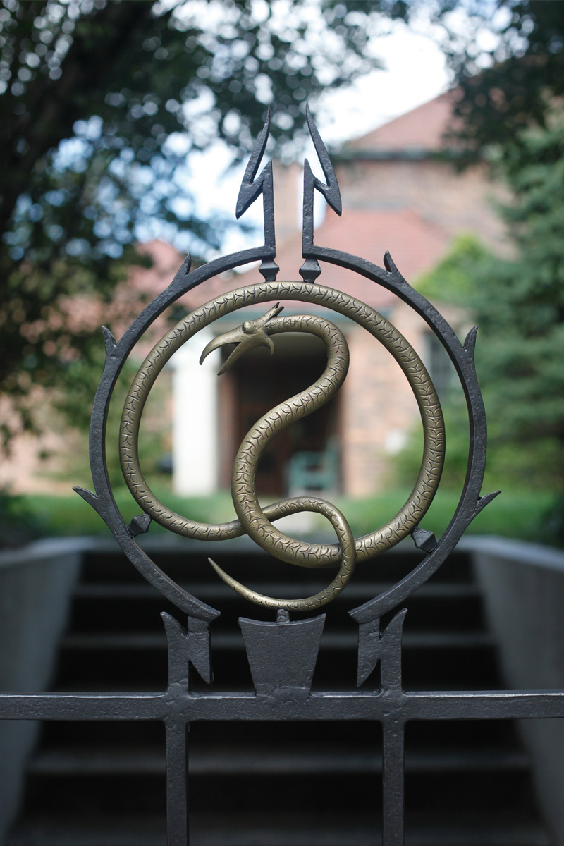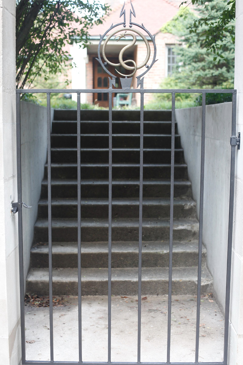 Cranbrook, MIRestored Iron Gate with cast bronze serpent detail. Designed by Eliel Saarinen. Located on Cranbrook University Campus. Tags: RestorationIronGateEliel SaarinenCranbrookMichigan