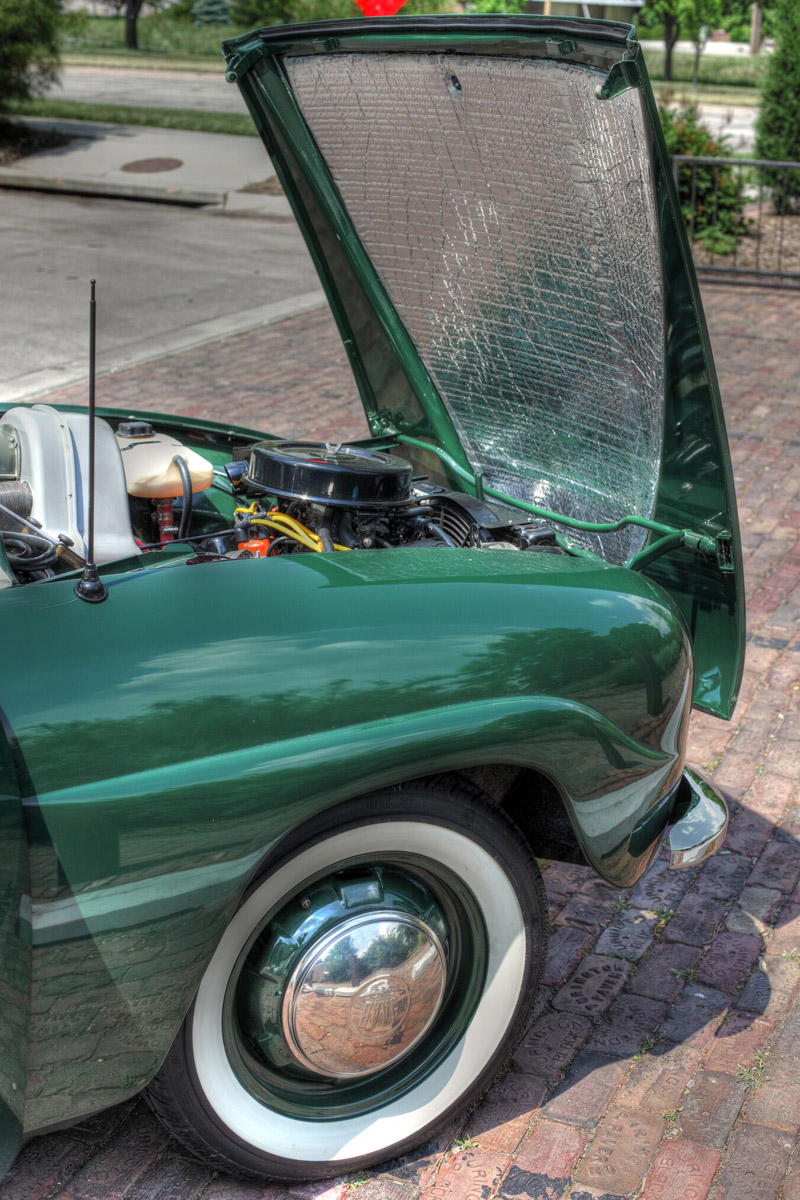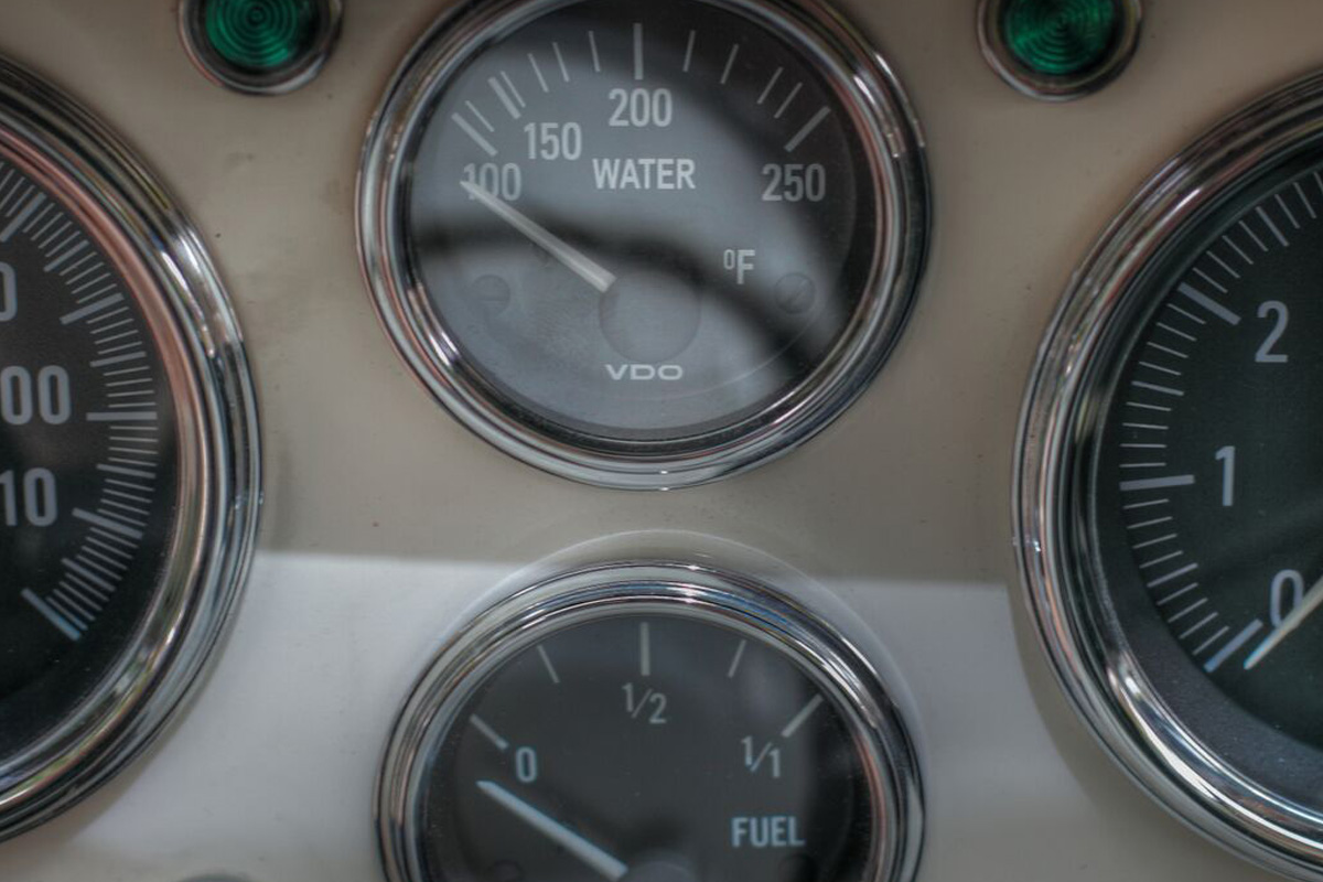 Body shaved and mid-60’s brightwork applied. Rebuilt motor, balance and blueprinted with ingle Weber carb, roller rockers, and mandrel bent exhaust. Custom wiring loom with marine grade components illuminated in a shaved dash containing management gauges. Finished with PPG 2-stage paint.
